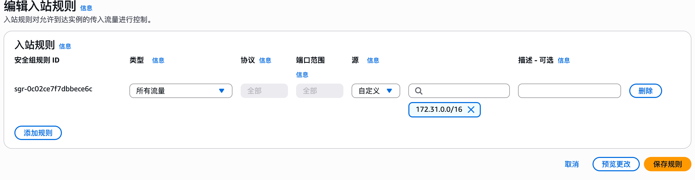 这几台 EC2 使用同一个安全组,入站规则只放行VPC网段和终端访问地址。