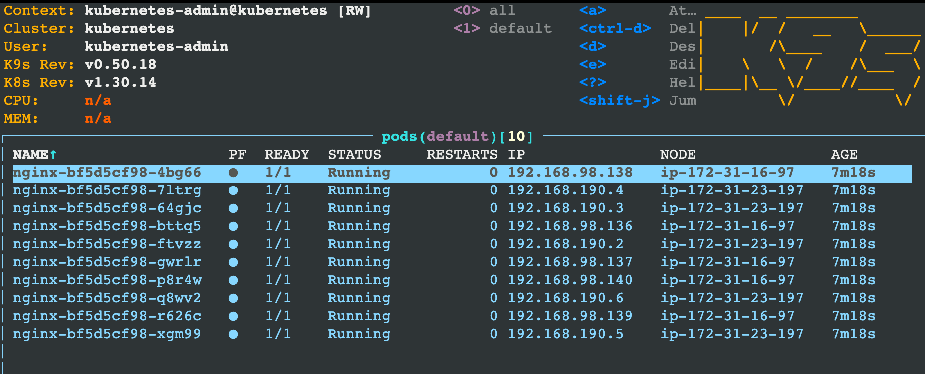 1 | ubuntu@ip-172-31-27-240:~$ kubectl get pods -o wide |