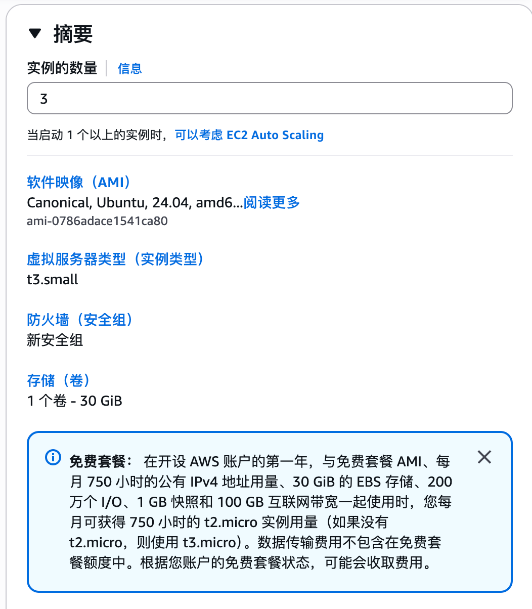 本文基于 Ubuntu,使用三台 EC2 实例:一台作为控制面(Master),两台作为工作节点(Worker)。